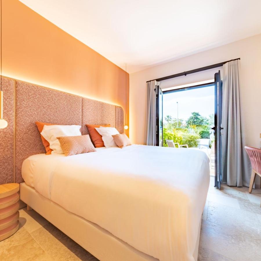 Die dreißig Zimmer des Hotels, verteilt auf drei elegante, einstöckige Gebäude, zeichnen sich durch ihre Helligkeit und beruhigende Dekoration aus. Die natürlichen Beigetöne und das Weiß, kombiniert mit edlen Materialien, schaffen eine warme Atmosphäre, die zur Erholung einlädt. Jedes Zimmer verfügt über einen Balkon oder eine Terrasse mit herrlichem Blick auf die Gärten, den Pool oder, in einigen Fällen, das glitzernde Wasser des Golfs von Saint-Tropez. Die geräumigen Suiten hingegen bestechen durch Annehmlichkeiten wie private Whirlpools und eine raffinierte Einrichtung.