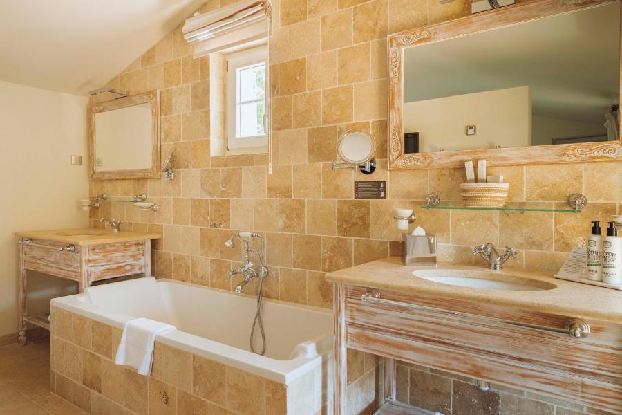 The communal spaces at La Bastide des Salins are designed to promote relaxation and enjoyment. The heated outdoor pool, surrounded by a sun-drenched terrace, is the perfect place to unwind or savor a cocktail served by the hotel bar. American breakfasts, included in your stay, are served every morning by the pool, allowing you to start the day gently in an idyllic setting.