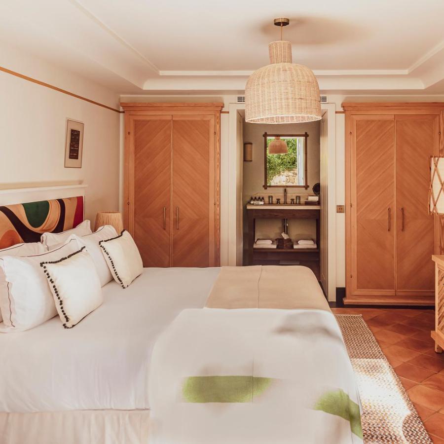 Les 34 chambres et suites de l'hôtel, conçues par le talentueux architecte d'intérieur Charles Zana, offrent un mélange subtil de matériaux locaux et d'inspirations des années 60. Les textures naturelles telles que le lin, la corde, la terre cuite et le bois clair côtoient des pièces d'artisanat régional comme les poteries de Vallauris et la verrerie de Biot. Chaque espace est baigné de lumière, avec des jardins privés ou des terrasses qui prolongent l'expérience méditerranéenne. Que vous choisissiez une chambre Deluxe avec vue sur la piscine ou une suite Prestige aux volumes généreux, vous y retrouverez un cadre apaisant et élégant.